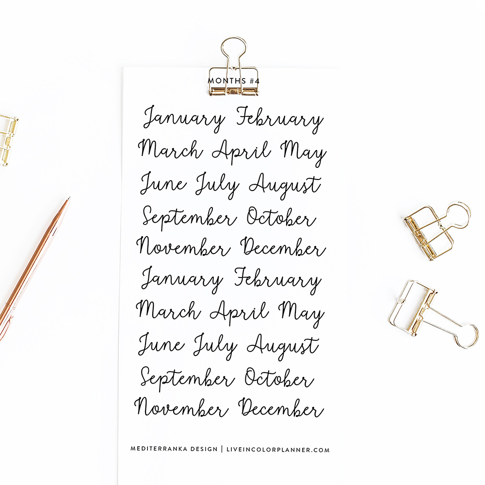 Bring a personal touch to your planners, journals, or calendars with these beautifully designed month name stickers.